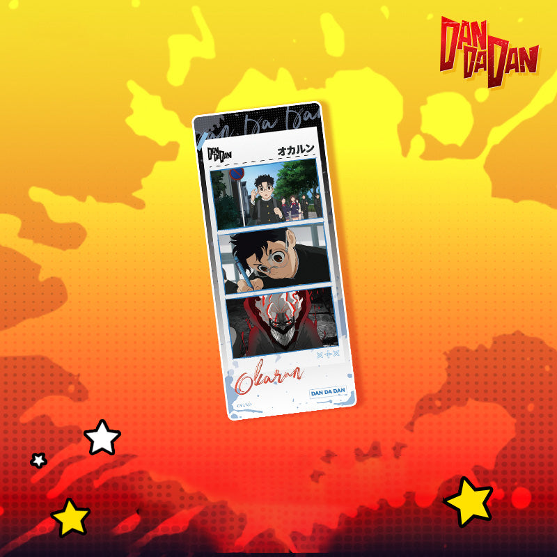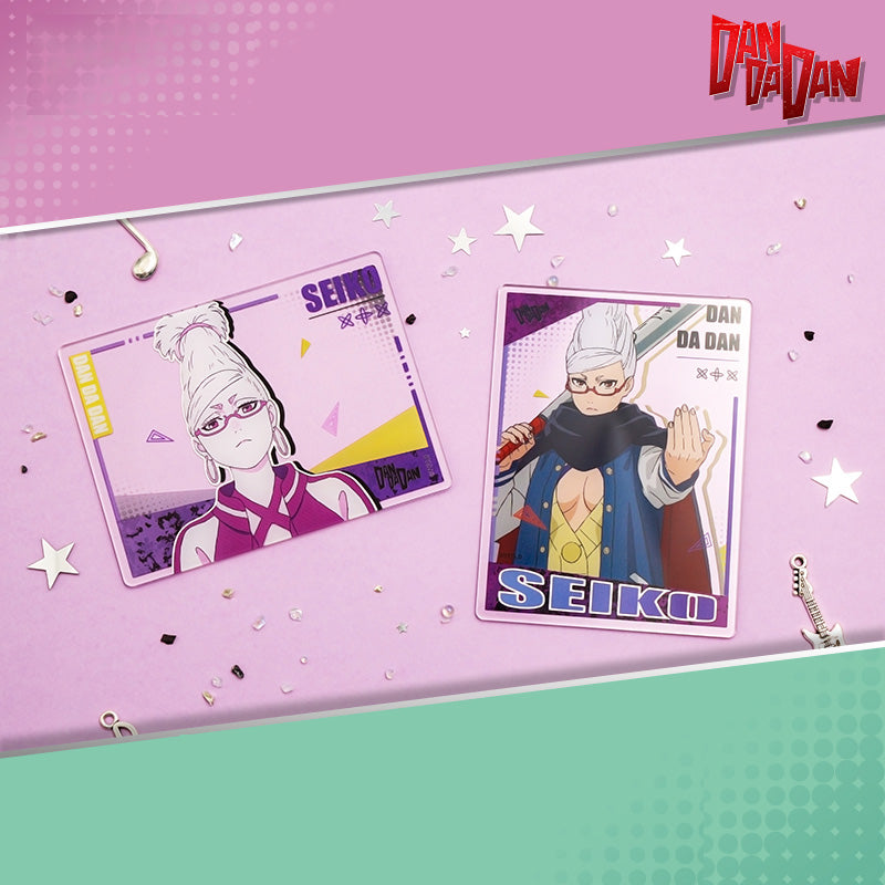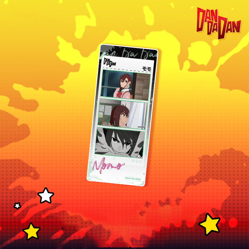 This collectible transparency card is officially licensed from the popular series Dandadan. Featuring character designs like Momo and Ken, it serves as a perfect display piece for anime enthusiasts.