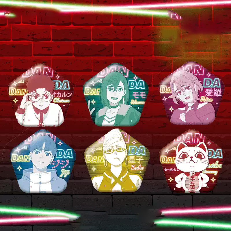This collectible badge set is officially licensed from the popular series Dandadan. Featuring glow in the dark technology, these badges are perfect for anime merchandise collectors and fans.